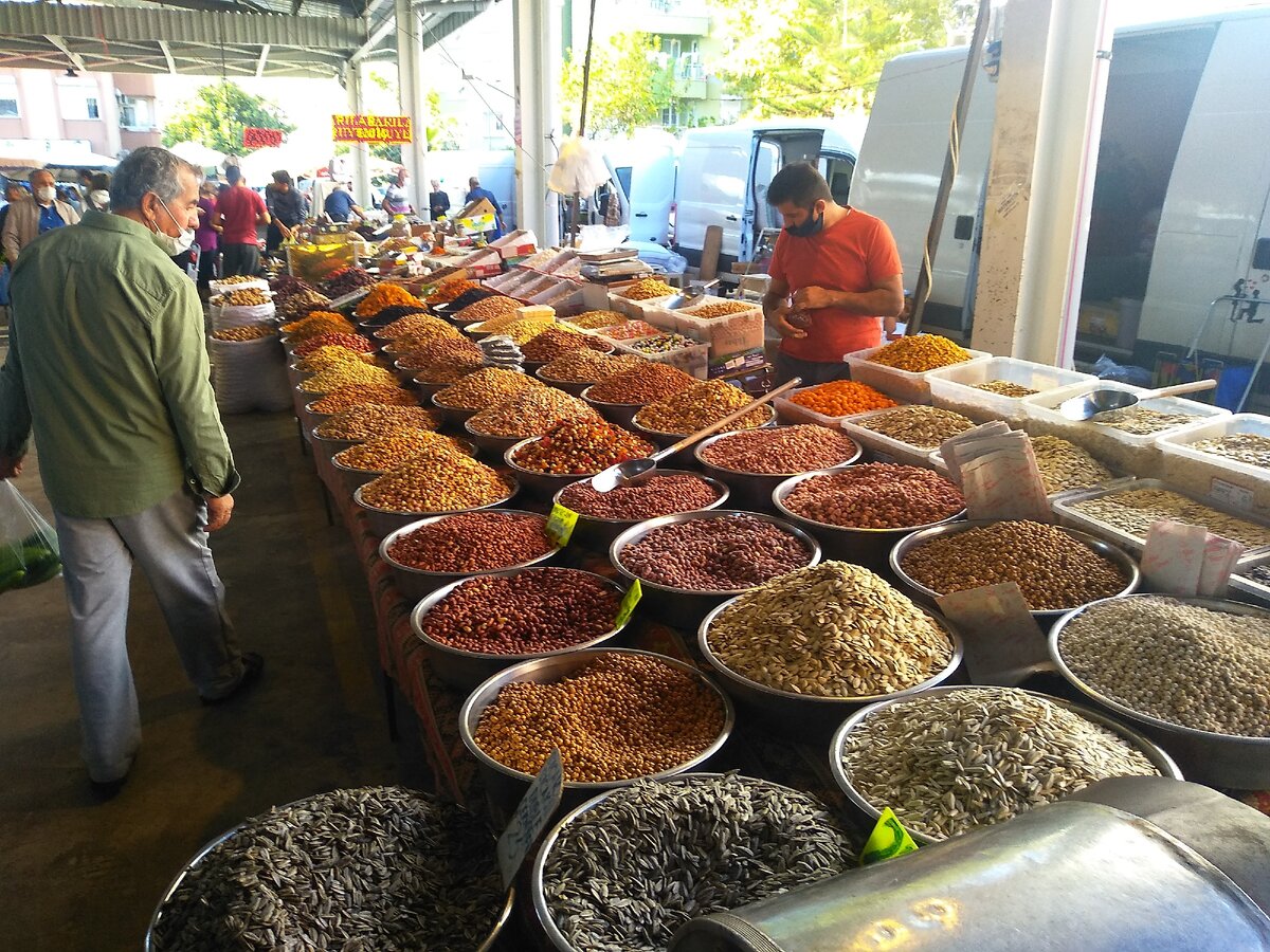 В первые дни моего пребывания в Турции для меня важно было определить, какими продуктами здесь можно питаться дёшево, сытно и не очень вредно. В общем, как я и предполагал, покупать стоило крупы (булгур, рис, чечевица, гречка), овощи, фрукты, сухофрукты, бобы и орехи.