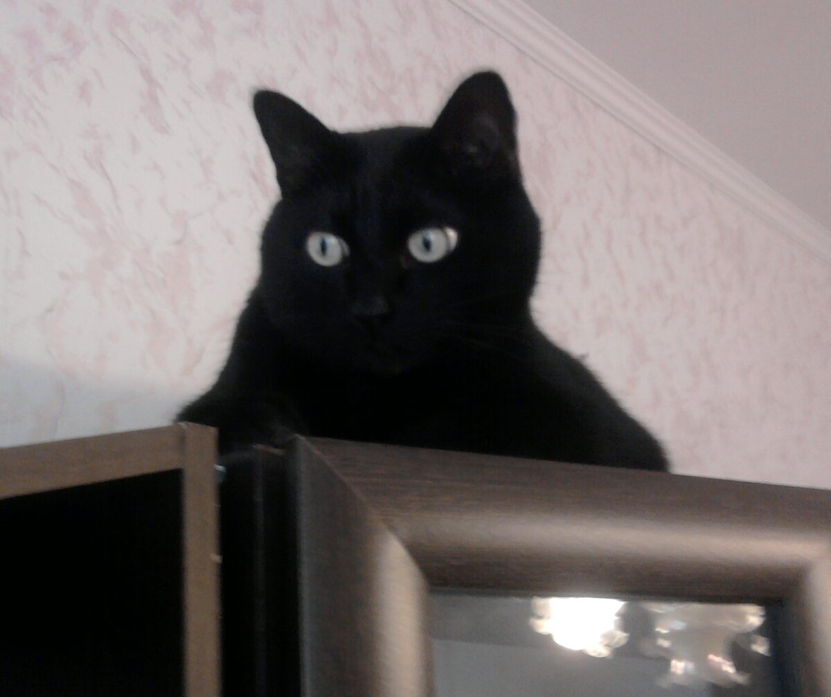 Дорогой читатель! В этой статье я расскажу Вам о моем уже ушедшем к звездам коте Масике и о казусном случае, приключившемся с нами. Я уже писала в нескольких статьях о своем любимом котейке и, если, кто-то читал, то Вы знаете, что Масик был очень красивым черным котом с огромными зелеными глазами, очень добрый и спокойный. Начиная с весны и до середины осени, мы с ним гуляли в яблоневом саду при школе. Там было комфортно. Никто нас не гонял. Масик нравился всем. Если на горизонте появлялись бродячие собаки, я брала кота на руки и мы спокойно ждали когда они уйдут. Если же рядом проходили хозяева со своими собаками на поводке, кот реагировал спокойно и продолжал заниматься своими делами – нюхать траву или ловить кузнечиков. Он был уверен – если что, я всегда спасу. А еще Масик любил залезать на старую яблоню со спиленными ветками и оттуда наблюдать за проходящими людьми. Но вот однажды случилось трагикомическое происшествие. Мы, как обычно, гуляли по саду недалеко от асфальтированной до