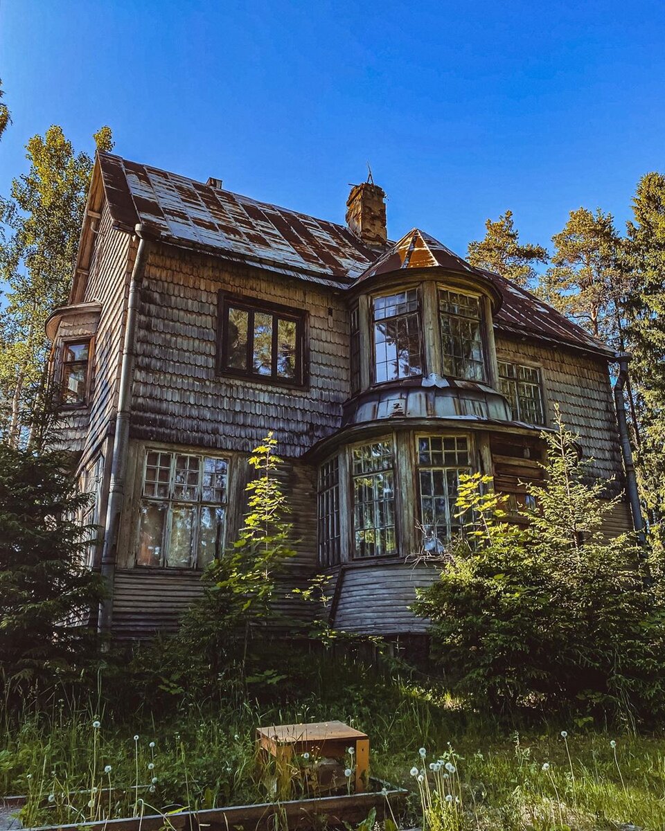 За поржавевшим забором, да среди лесной гущи притаился очередной пример деревянного зодчества = объект культурного наследия Ленинградской области – “Дача адмирала Макарова”, в стиле финского национального романтизма, постройки начала XX века.🚢