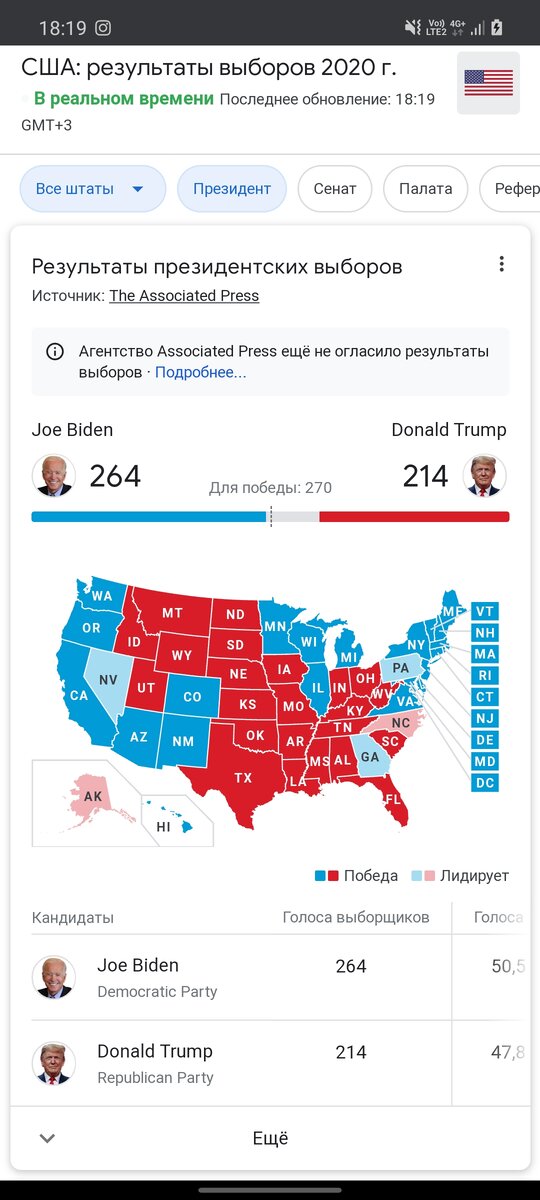 На момент написания окончательный результат выборов еще не известен. Однако уже сейчас с вероятностью 90% можно сказать, что победу одержит вице-президент США Джо Байден.
