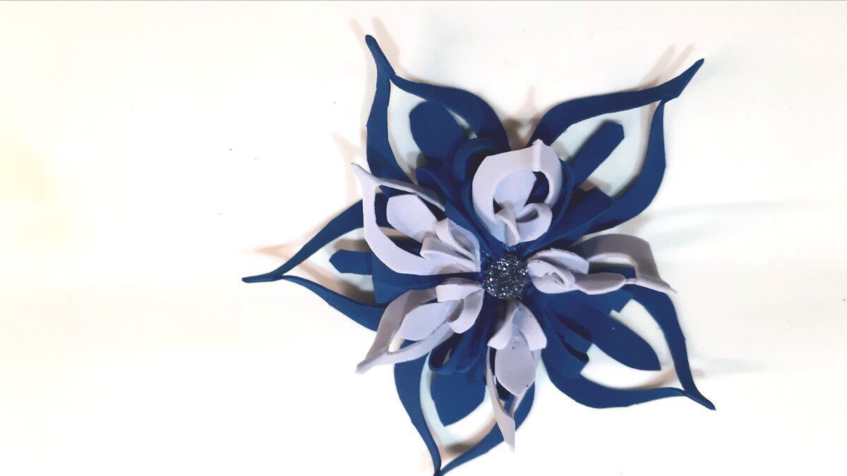 Для изготовления броши я предлагаю использовать синий и серый фоамиран. Конечно, выбирайте на свой вкус и к своему наряду. Можно также использовать и глиттерный фоамиран.