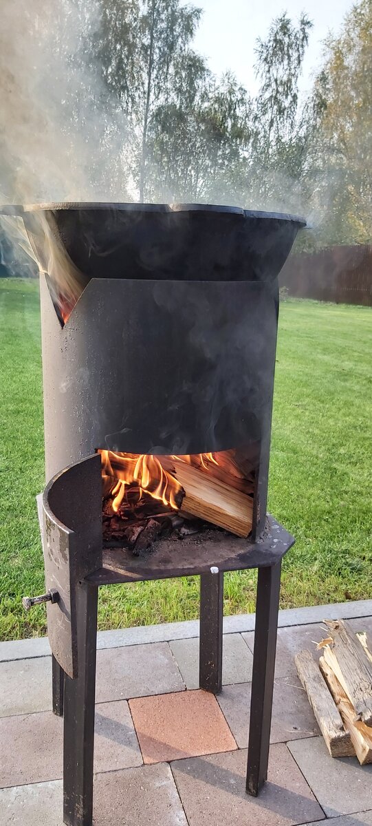 Мой выбор упал на печь с толстыми стенками 6мм, под казан 10-12л. Мастер находился от меня буквально на соседней улице на ВДНХ. Цену мастер обозначил 6тр, и тут мне в голову пришла идея.🤔 Может попробовать купить у него заготовки металла и все сварить и вырезать самому?