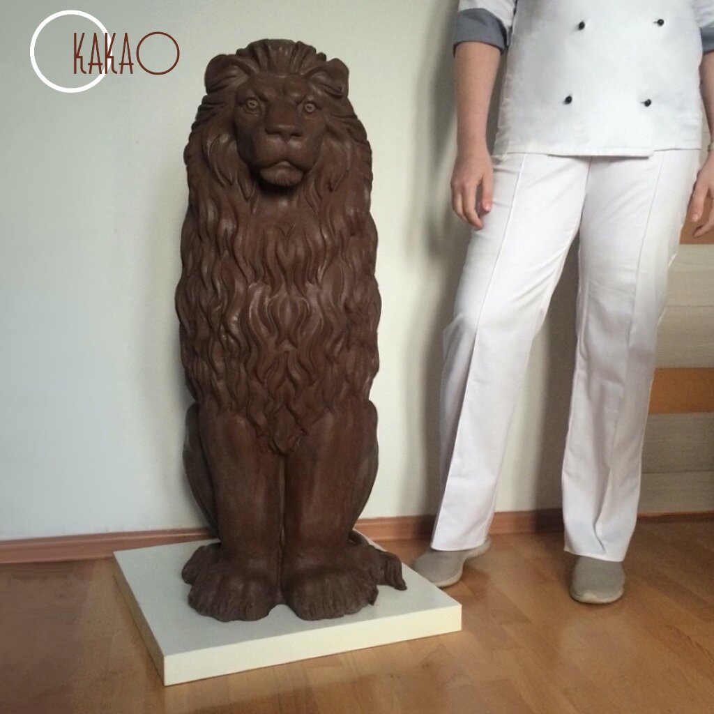Специально для тех, кто справедливо считает, что шоколада не бывает много. Шоколадный лев высотой 109 см. Очень давно в Китае появилась традиция ставить двух львов, больше похожих на свирепых драконов, охранять входы в святые места (церкви и монастыри) от злых духов и дурных людей. Со временем традиция развилась, перекочевала в другие страны и приобрела иной смысл и колорит. Лев всегда был