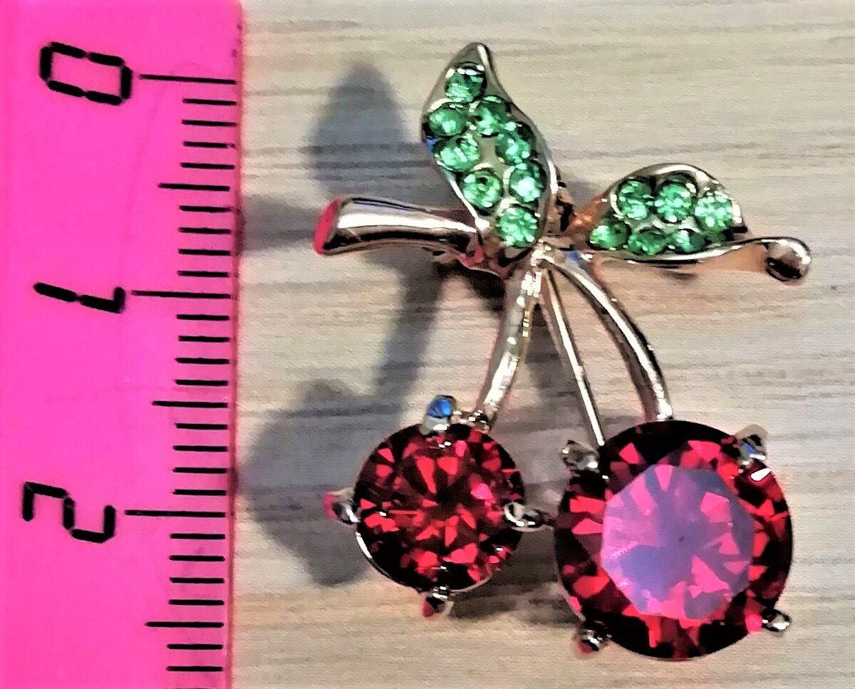 Одна из самых моих любимых брошек - "Вишенки", покупала за 140 рублей. На странице магазина в Алиэкспресс написано, что эта брошка из хрусталя.