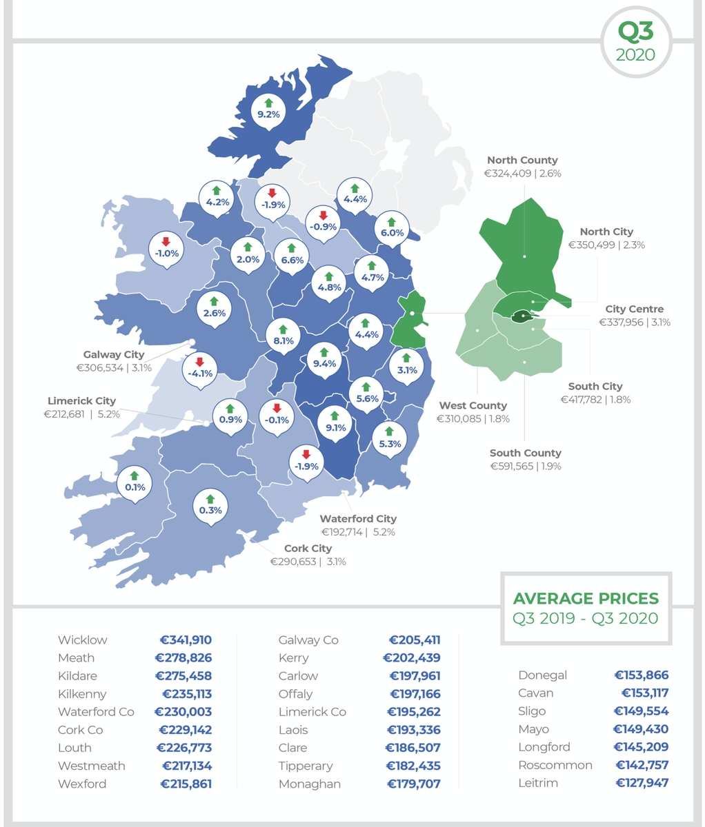 Не смотря на коронавирус и снижение цен на недвижимость во многих странах, в Ирландии цены продолжают расти, так как спрос есть, а вот с предложением стало ещё хуже. Связано это с несколькими факторами: Большая часть недвижимости — это традиционные дома и таунхаусы с тремя спальнями и участком, а сейчас все больше молодых людей, живущих по одному или вдвоем хотят жить недалеко от центра в современной квартире и участок и лишние спальни им совсем ни к чему. В Ирландии нет налога на недвижимость в которой никто не живет, поэтому в стране около 15% зданий пустует. Если сравнить это с количеством бездомных, то окажется что на каждого из них приходится примерно по 35 пустующих домов. Есть даже термин дома-призраки - большое количество пустующей недвижимости, которая была построена во времена Кельтского тигра. Кризис 2008 года обрушился на Ирландию в тот момент, когда в Дублине строительство было в самом разгаре, а до остальных городов деньги только добрались. И вот, спустя более десяти лет