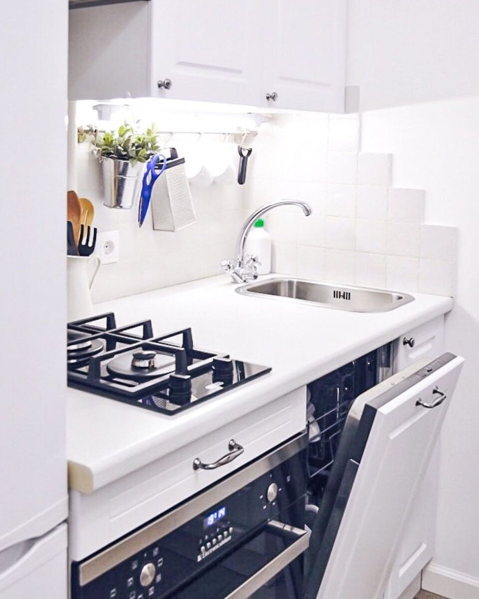 - Увеличить рабочую поверхность, можно заменив обычную варочную поверхность, на “домино”, нам 2ух конфорок хватает вполне, хотя готовим каждый день, используя только варочную и духовой шкаф. Выиграли +30 см к рабочей поверхности.