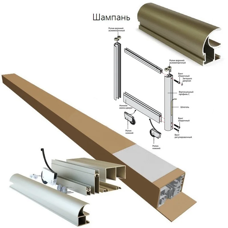 Рамы актуальны для всех шкафов-купе и называются раздвижной системой. Выполняются из стали или алюминия, предназначены для движения дверных полотен. Рама располагается по периметру и позволяет придать нужный уровень жесткости. Направляющие по перемещению полотна – треки, обязательно используются ролики, они облегчают движение дверей.