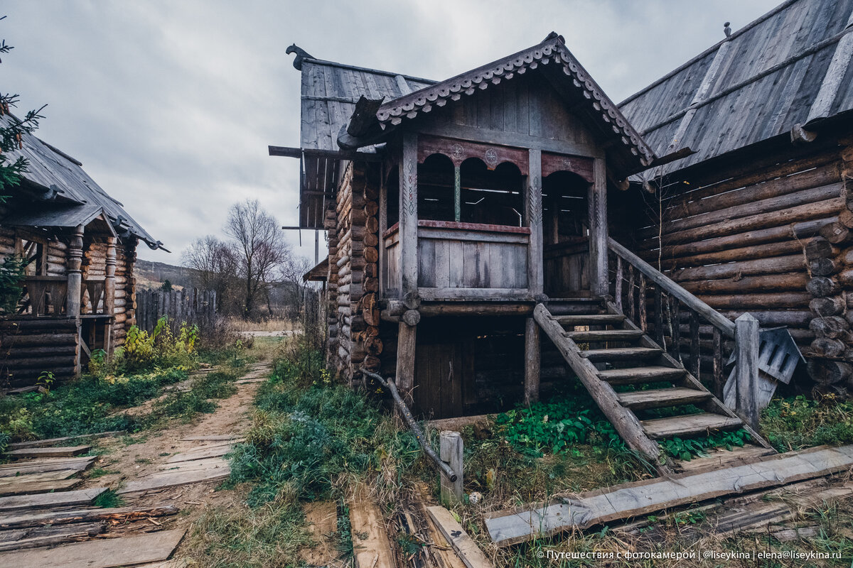 Буквально десяток километров от МКАД, 500 метров по разбитой грунтовке вдоль реки, и вот, за поворотом, показываются деревянные башенки. Конечно, их совсем не ожидаешь тут увидеть. Потому что все достопримечательности "одного дня" хорошо известны, и деревянных теремов в русском стиле среди них не значится. Измайловский кремль считать не будем. Тем интереснее, когда появляется что-то новое. А тут прям целый "поселок" с избами и резными наличниками. Выглядит довольно красочно. Хоть и не очень опрятно. Да и вандалы успели оставить свой след. Никогда не пойму людей, которые пишут что-то на стенах. Правда, все уже постепенно начинает разрушаться. Но в некоторые постройки еще можно зайти. Только там почти везде голые стены. Но в одном из теремов нашлась странная печь. И лавка. А в целом - это тот самый случай, когда снаружи интереснее, чем внутри. Юридически это даже не Подмосковье, а Москва. Тем более странно было обнаружить странные постройки, которые, кажется, телепортировались откуд