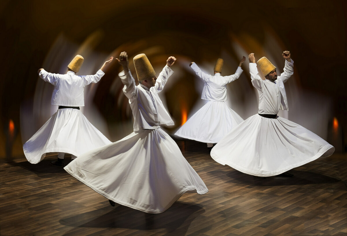 Наступил вечер, и текке дервишей стало наполняться людьми. Установилось абсолютное молчание, начали звучать стихи во славу пророка Мухаммеда, потом их сменили музыкальные импровизации. И, наконец, дервиши в центре зала начали танцевать. Спокойно и величаво они направляли правую руку к небу, а левую устремляли к земле.