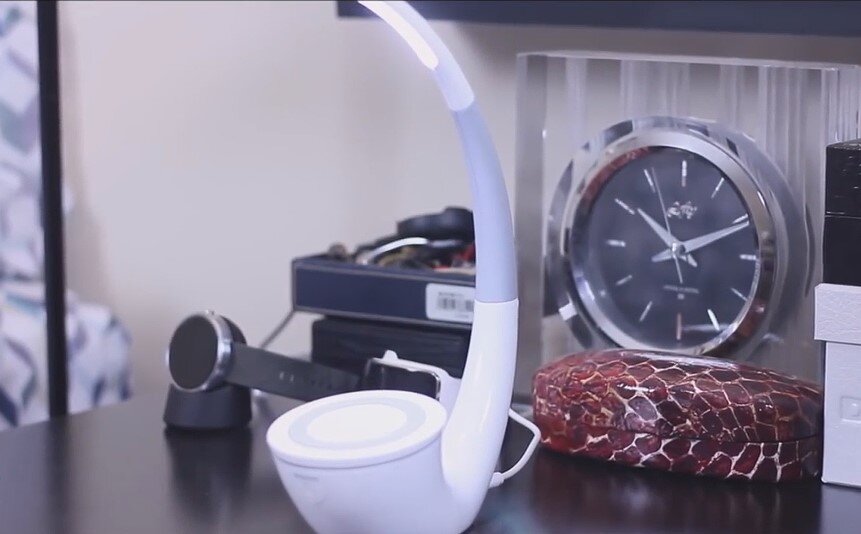 Частенько люди перед сном зависают в телефоне, где заканчивают свои дела, после чего ложатся спать. Этот вариант представляет из себя беспроводную зарядку и по совместительству ночник.