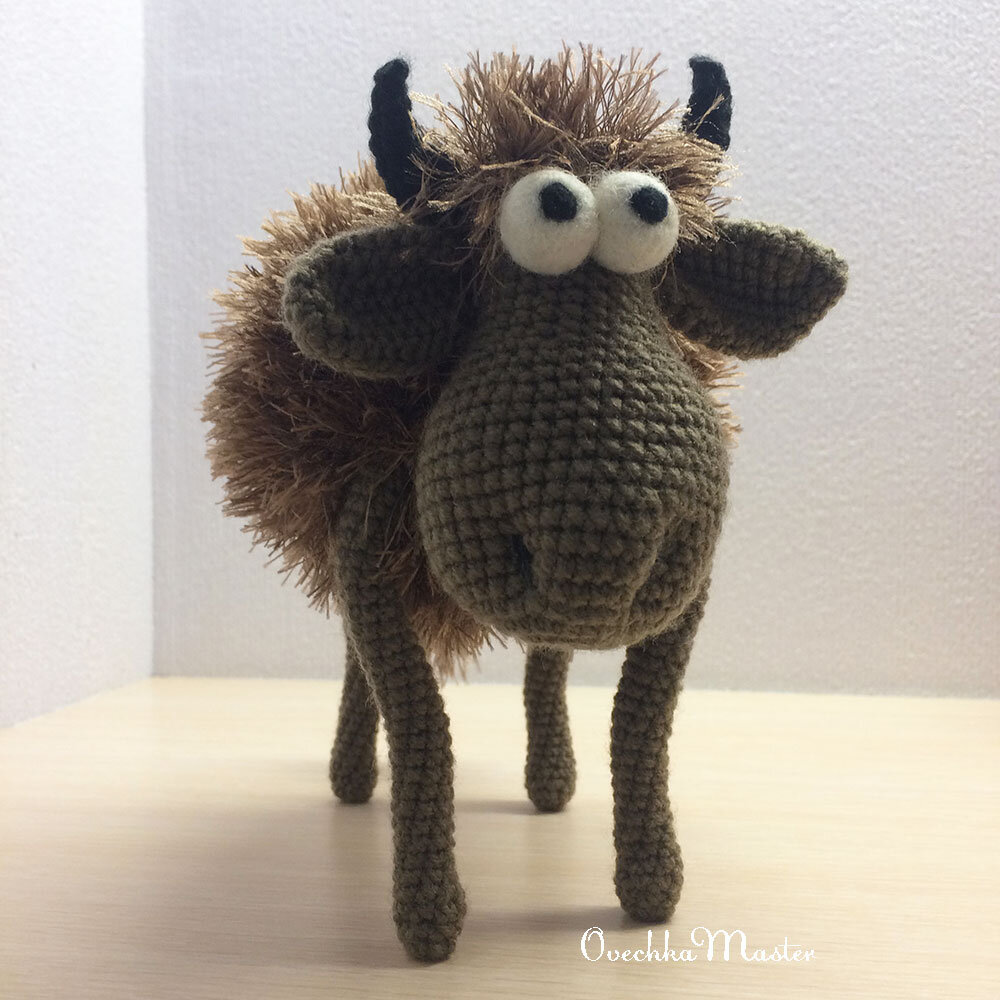 На эту корову у меня нет описания, здесь я просто экспериментировала с прической. Сделала вот такие кудряшки из шерсти.