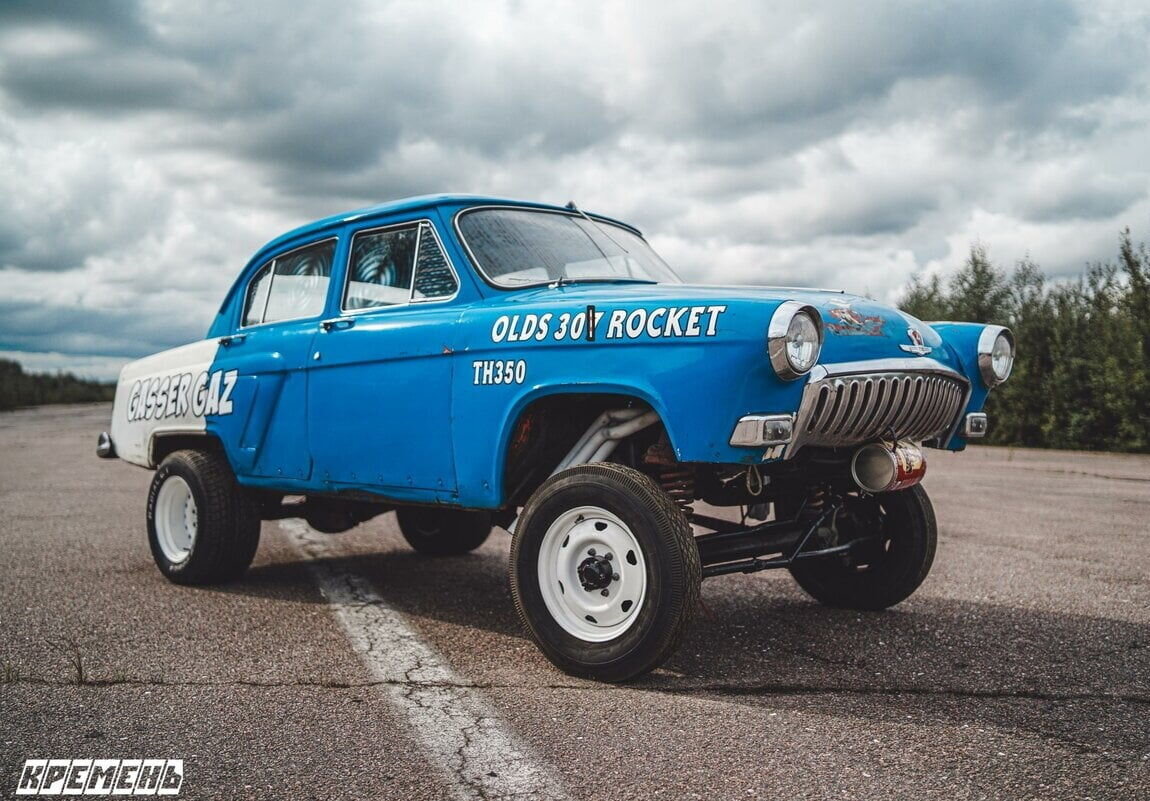 ГАЗ-21 «Волга» в стиле Gasser с двигателем Oldsmobile V8 и автоматической коробкой передач.
