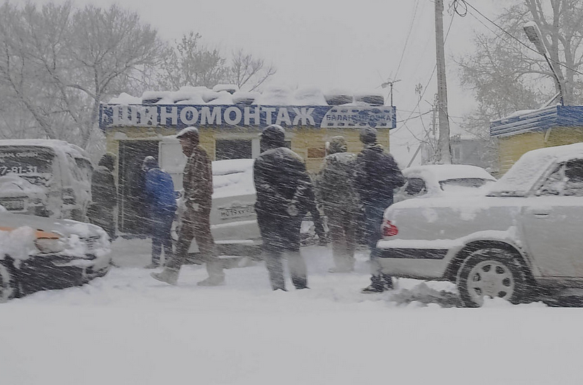 Но когда выпадают первые осадки - очередь на шиномонтаж идет до поздней ночи, если не круглосуточно.