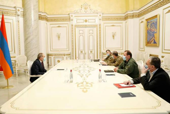 Никол Пашинян встретился с министром обороны Давидом Тонояном, министром иностранных дел Зограбом Мнацаканяном, начальником Генштаба Вооруженных сил, генерал-полковником ОникомГаспаряном и начальником Главного оперативного управления ГШ ВС, заместителем начальника Генерального штаба Вооруженных сил Кареном Абрамяном.