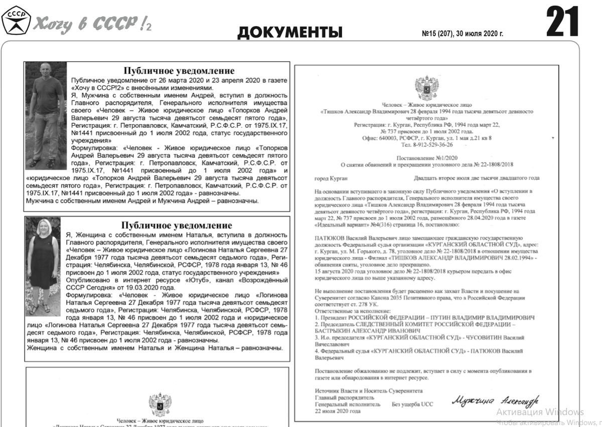 На основании этих канонов я разместил во Всероссийской общественной газете "Хочу в СССР-2" публичное уведомление.