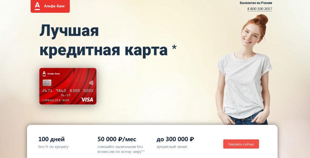 - большой льготный период кредитной карты Альфа-Банка — 100 дней;