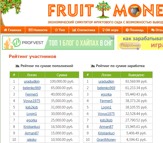 Сегодня мы поговорим про Бизнес игру под название FruitMoney1. При регистрации нам дарят одно дерево под названием яблоня
