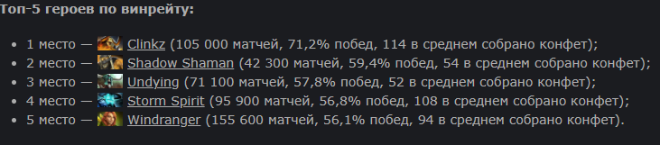 Как и Шторм, он берет свое высокой мобильностью (сборка Аганима здесь обязательна), а также высоким уроном по площади за счет фистов. Более того, с их помощью он может подбирать конфеты без особого риска.