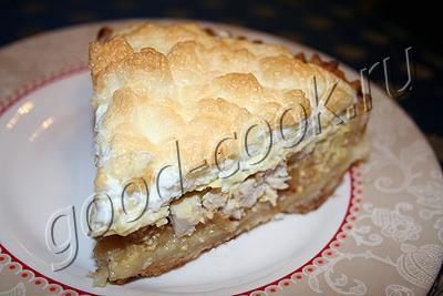 Выложить пену на пирог и поставить в духовку до лёгкого зарумянивания верха.