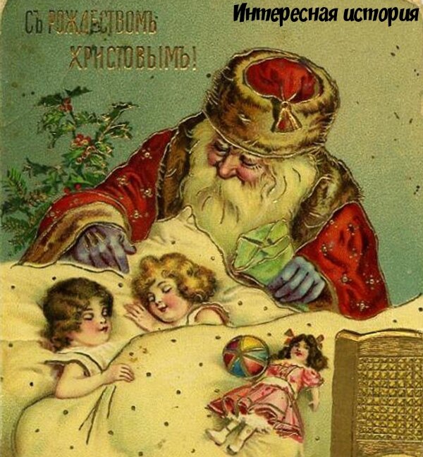 В России первые открытки были напечатаны к концу 1890-х годов. До этого они были привозными. Чаще всего делали их в фотомастерских и раскрашивали вручную, а в качестве изображений наносили Санта-Клаусов с дарами в чулке или гномов с кошельками полными денег.