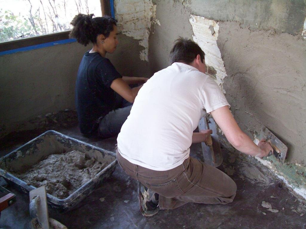Не стоит пытаться сразу накидать большой слой, он сползет со стены под своим весом. Обычно штукатурят в два – три приема. Время между слоями составляет несколько часов.