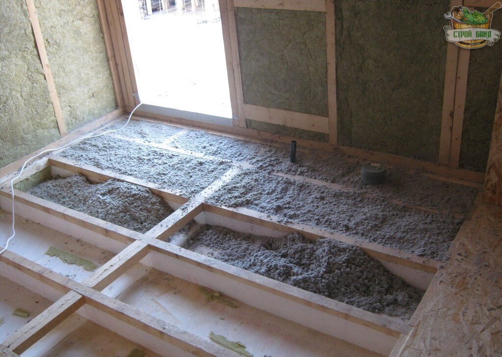 К низу лаг крепятся опорные доски на которые укладывается черновой пол. На черновой пол(естественно через слой гидроизоляции)укладывается утеплитель.