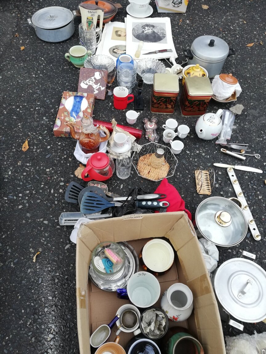 Сегодня суббота и, как никогда, чувствуется холодная осень. Ночью во Владикавказе шёл дождь и как следствие - похолодание, за окном +3. А на блошином рынке раздолье - и продавцов мало, и покупателей не густо. Мой взгляд ничто не цепляет, хотя я не права, среди кучи безделушек мне попадается панно "Ну, погоди", цену почему-то не спрашиваю.