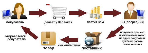 - Не вкладываем деньги в товар, нет необходимости закупать партию товара и ждать заказов. Мы сначала получаем заказы, затем оплачиваем товар! Можешь забыть о непроданной партии товара пылящийся на балконе )