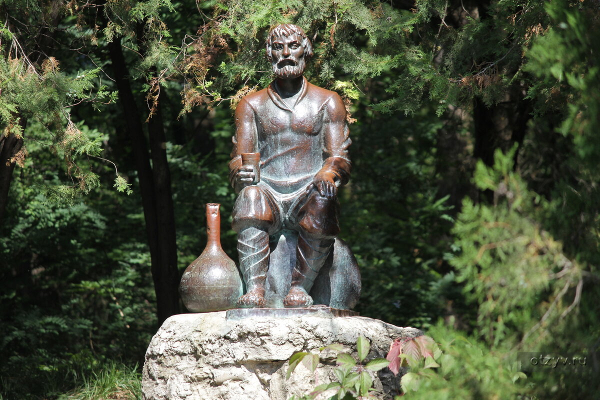 Смотрит мужичок в даль уже более 100 лет, по сей день гости и жители курорта приходят к мужичку и вместе с ним смотрят на солнце, далекие горы и живительную воду.