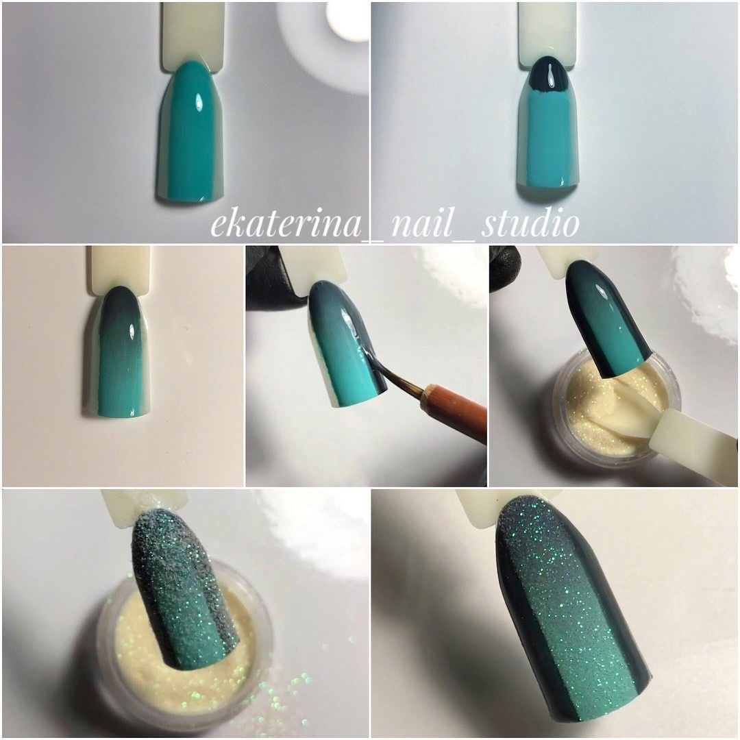 2️⃣Градиент (обратите внимание, что заполняем не весь ноготок, а только необходимую часть) Сушим
