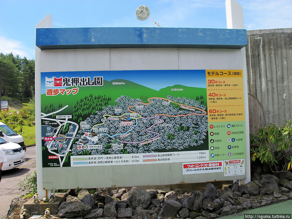 На турбине всё больше пишут о местах земных или «внеземных». Но сегодня, уважаемый читатель, я предлагаю отправится на экскурсию в преисподнюю. А почему бы и нет? Тем более Стикс, как Энею переплывать не придётся. Если быть точным это не совсем преисподняя, дело пока ещё на земле, небо вверху голубое, если с погодой повезло, если не повезло – то условия приближённые к оригиналу. Есть на границе двух префектур – Нагано и Гумма, действующий вулкан Асама, высотой 2568 метров. На острове Хонсю он самый боевой, т.е. наиболее активный. Не спится ему, — чихает он периодически, а иногда и сильно кашляет. История помнит два его самых разрушительных извержении. Первое было в 1108 году, а второе в 1783-ем. В 1783-ем году, поток лавы 7-ми километровой ширины, стёр с лица всё на своём пути, в том числе и ближайшие селения, унёся жизни почти 1400 человек. Со временем, застывшая лава образовал огромную долину из искарёженых камней. На этом месте японцы разбили парк Ониосидасиэн(Onioshidashi park, 鬼お押し出し園). Перевести можно примерно как парк того, что повыталиквали «они». «Они» в японской мифологии это демоны, черти. Считают, что такие причудливые камни на поверхность земли могли только они вытащить. Местные жители верили что внутри вулкана Асама живут «они» и эти камни это их рук дело. По одной из легенд, взбунтовашихся чертей выгнали из горы и они отыгрались на близлежащей деревушке. Так это или нет, нам осталось лишь гадать и пройтись по парку. Тем более в мире таких парков всего только три.Перавый взгляд на парк