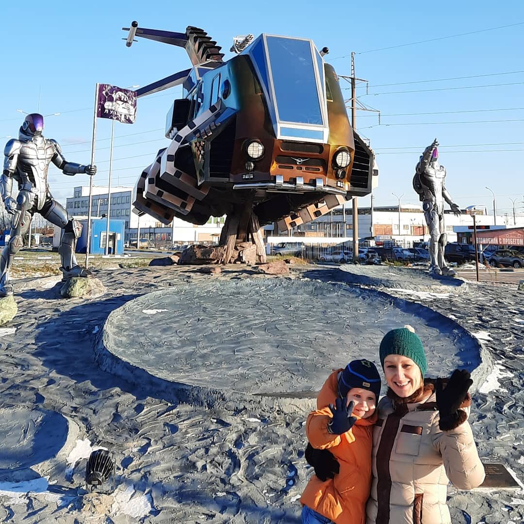 На въезде в город Новосибирск из города Обь, напротив дилерского центра УАЗ - "Луна Авто" поставили очень интересную и масштабную скульптурную композицию.
