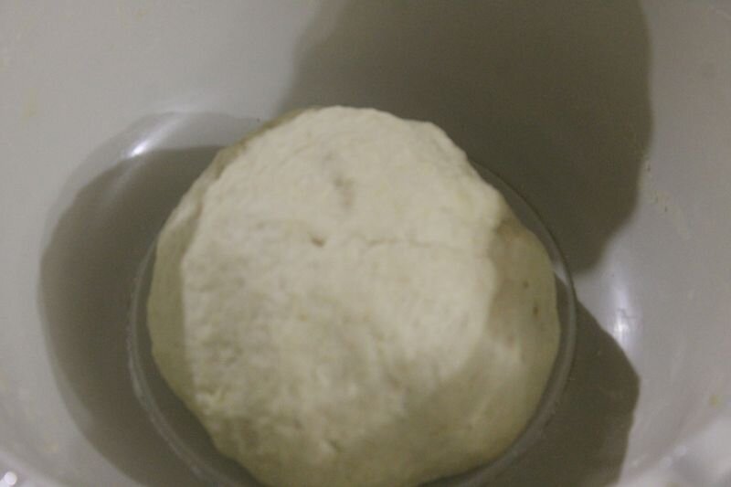 После того, как начинка готова смешиваем её, солим и перчим, затем достаем тесто и еще раз вымешиваем минут десять. Чем лучше вымешано тесто, тем вкуснее оно в итоге получается.