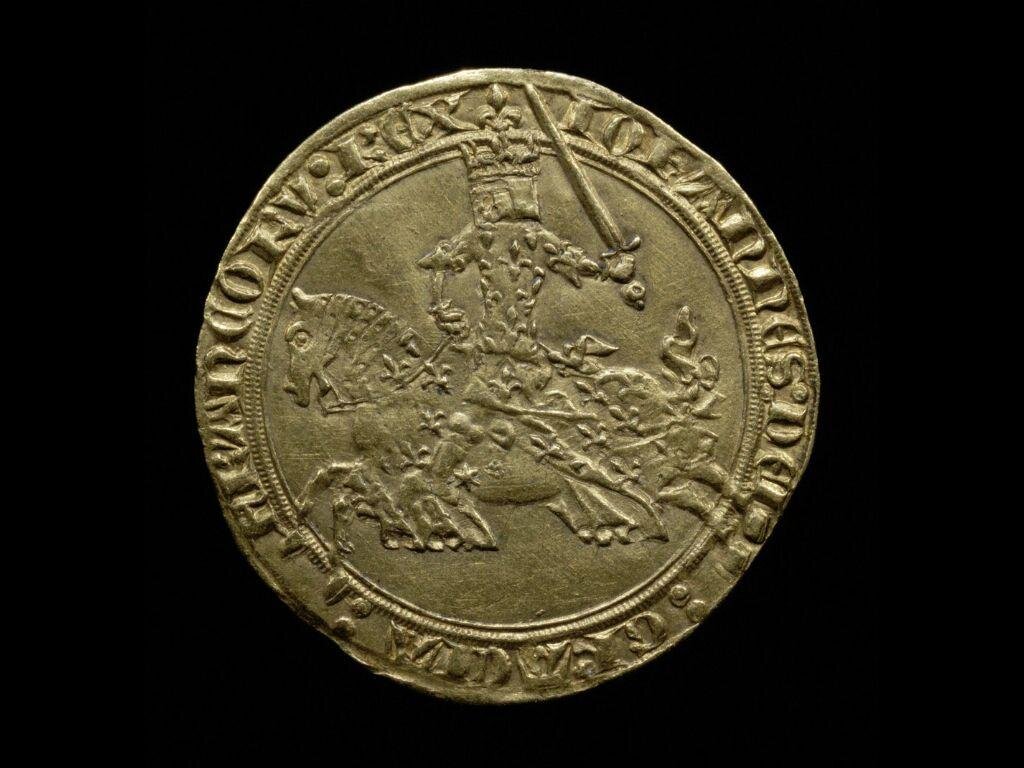 Монету "franc à cheval" ("конный франк") было приказано выпустить 5 декабря 1360 г. с целью выкупа короля Иоанна II (родился в 1319 г., годы правления 1350–1364 гг.), который попал в плен к англичанам в битве при Пуатье в 1356 г. во время Столетней войны. Выкуп составлял огромную сумму в 3 миллиона экю, а тот факт, что монета была выпущена для освобождения короля, обусловил