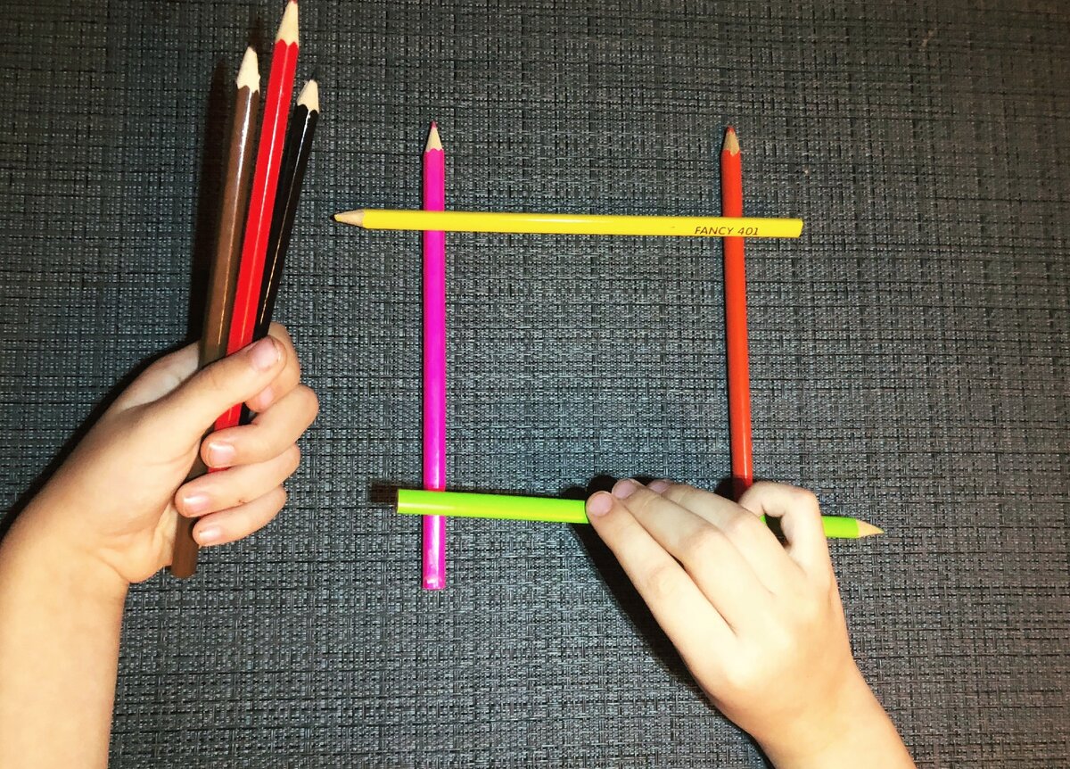 Вместо карандашей можно использовать палочки для счета, спички, любой подручный материал. Все зависит от того, какую проблему сейчас прорабатываете.