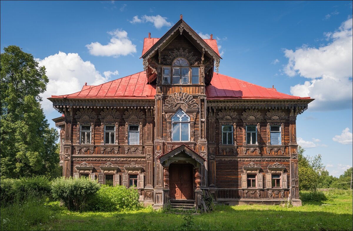 Дело в том, что Поляшов был не рабочий, а крестьянин. По происхождению. Это раз. И занимался он, как и многие костромские крестьяне, отходническим промыслом. Вот только у Ивана Поляшова быстро проявилась деловая жилка и он вскоре не сам работал, а артелями руководил. Хотя руки и голова у него были золотые, что его заброшенный дом-терем в опустевшей деревне Погорелово и доказывает самым наглядным образом. Считается, что в его строительстве он и сам принимал активное участие – причем не только проект придумал, а и работал тоже вместе с нанятыми строителями.