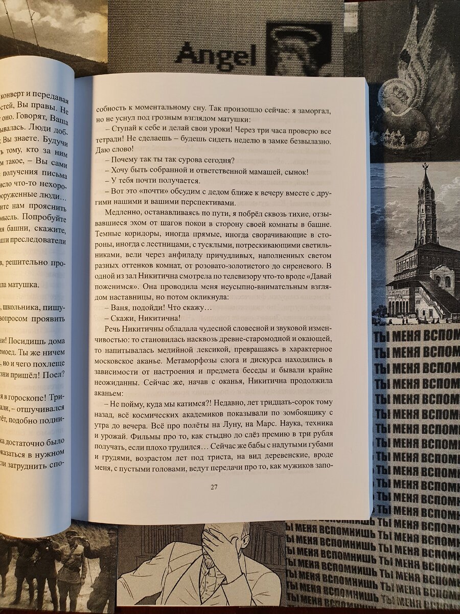 Речь Никитичны обладала чудесной словесной и звуковой изменчивостью: то становилась насквозь древне-старомодной и окающей, то напитывалась медийной лексикой, превращаясь в характерное московское аканье. Метаморфозы слога и дискурса находились в зависимости от настроения и предмета беседы и бывали крайне неожиданны. Сейчас же, начав с оканья, Никитична продолжила аканьем: