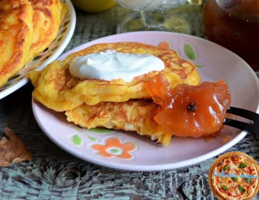 Рецепт «Тыквенные оладьи с айвой»: