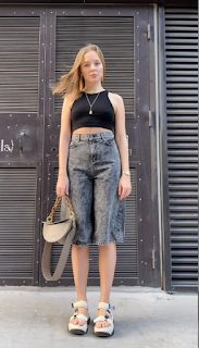 Еще один хак и совет, опять же многие этим не пользуются, но я бы посоветовала присмотреться на модель на подиуме. Как она идет? Она идет слегка занося одну ногу за другой. При позировании слегка перекращиваете ноги и таким образом сужаете бедра визуально и делаем фигуру "песочные часы"