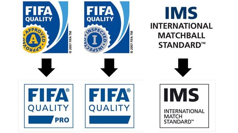- Approved, являвшийся самым высоким стандартом ФИФА с прохождением дополнительного теста, имитирующего 2 тысячи ударов по мячу при игре на поле;
