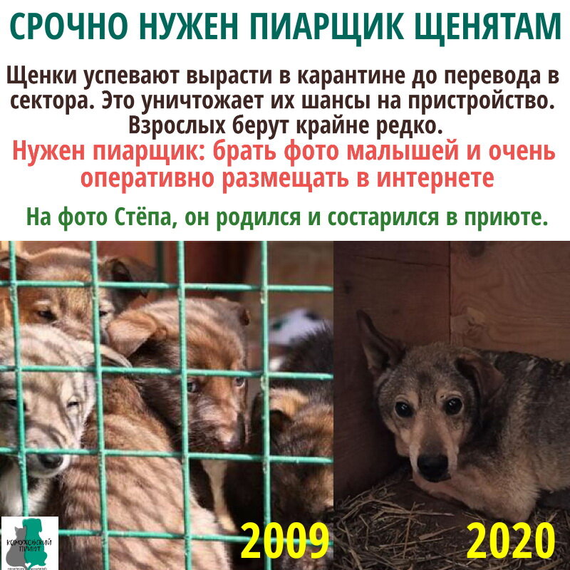 В приюте очень много совсем маленьких щенят. Есть шанс их пристроить, но пока совсем маленькие. С каждым днем шансы тают.
