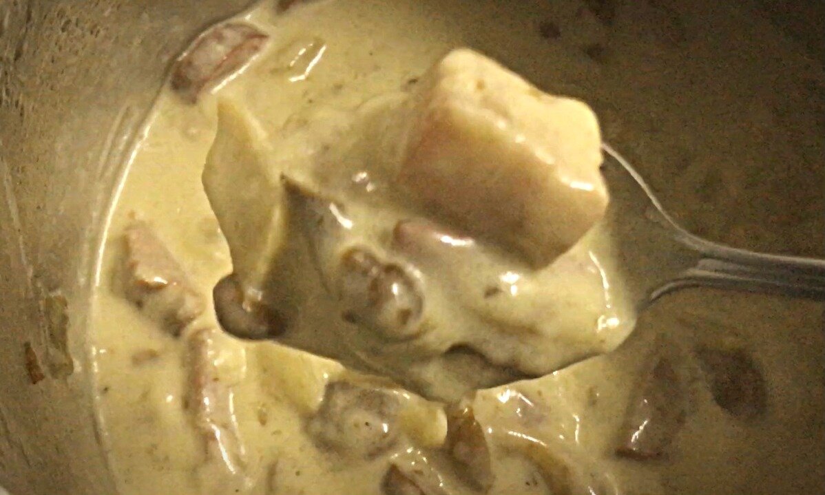 Когда соус немного покипел, я добавляю сливки и сметану, а также специи. Все это хорошо перемешиваю, довожу до кипения и уменьшаю нагрев до минимума. И продолжаю варить соус минут пять.
