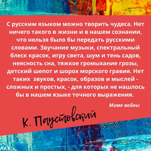 С русским языком можно творить чудеса. Нет ничего такого в жизни и в нашем сознании, что нельзя было бы передать русскими словами. Звучание музыки, спектральный блеск красок, игру света, шум и тень садов, неясность сна, тяжкое громыхание грозы, детский шепот и шорох морского гравия. Нет таких звуков, красок, образов и мыслей - сложных и простых, - для которых не нашлось бы в нашем языке точного