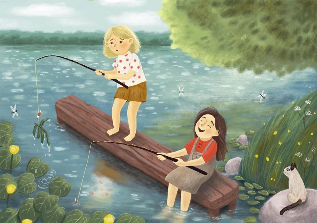 А новая картинка в серию про детские воспоминания. Мы часто обрывали крючки, запутавшиеся в водорослях, и частенько хохотали при этом, да в общем-то повод посмеяться можно было найти везде, даже на пустом месте))