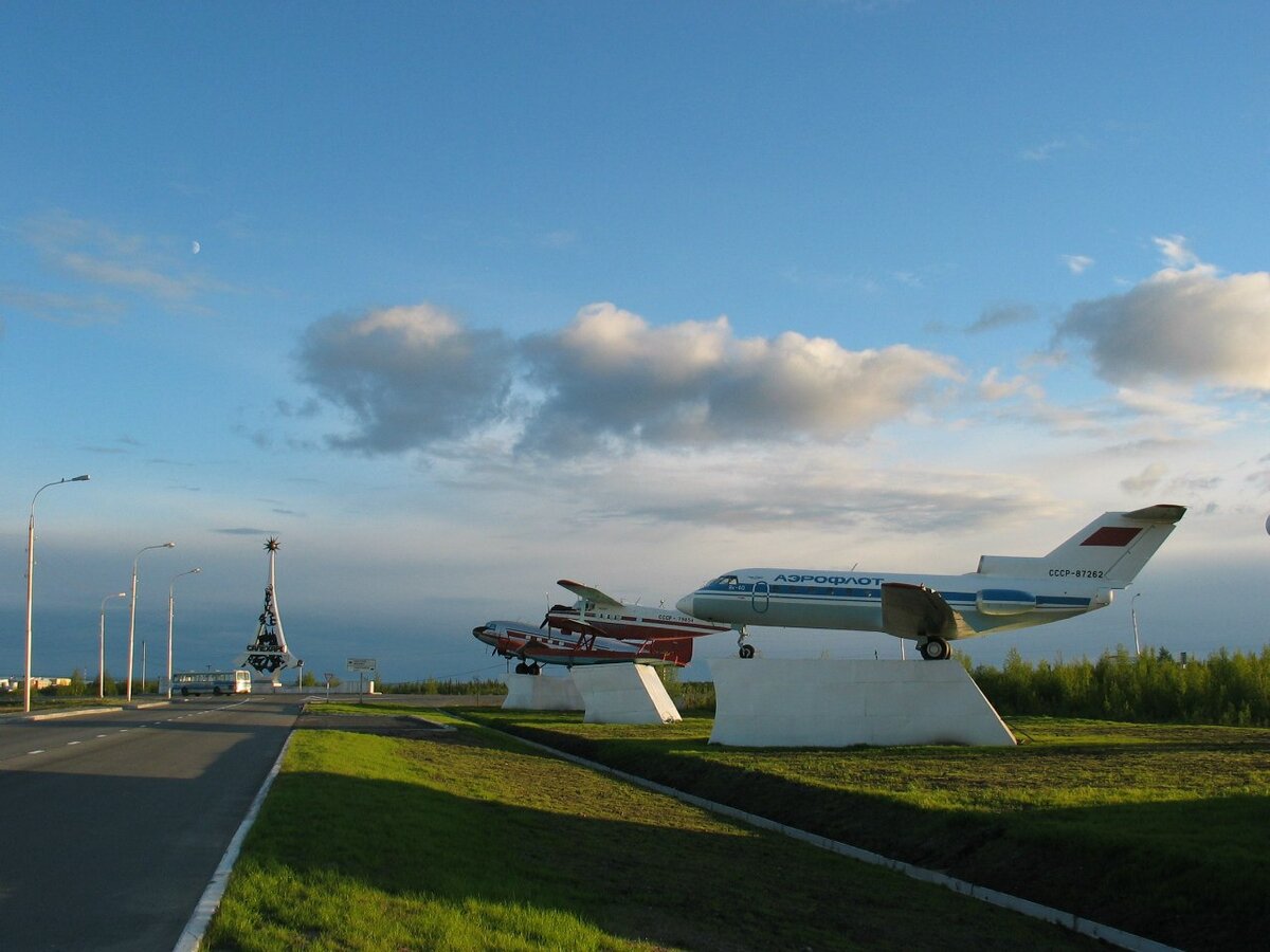 Моя первая дальняя командировка состоялась в 2004 году в столицу Ямало-Ненецкого автономного округа - город Салехард. Город резко контрастировал непривычной чистотой, аккуратными цветастыми домиками, спокойным дорожным движением по идеальным автодорогам. А ещё меня, как любителя авиации, порадовала небольшая экспозиция на выезде из аэропорта. На тот момент она была представлена четырьмя самолётами - Ли-2, Ан-2В, Як-40 и Ан-26 и одним вертолётом Ми-8. Ли-2, до 1942 года известный как ПС-84, был лицензионной копией американского DC-3 и выпускался в множестве различных модификаций. Так, например, в консолях крыла некоторых Ли-2 устанавливались дополнительные топливные баки по 350 л - это способствовало увеличению дальности полета. Таким самолетам присваивалось обозначение Ли-2Д - они использовались в основном в полярной авиации, на Крайнем Севере и Дальнем Востоке. Эти самолеты активно применялись при высадке участников экспедиций советских научно-исследовательских станций "Северный полю