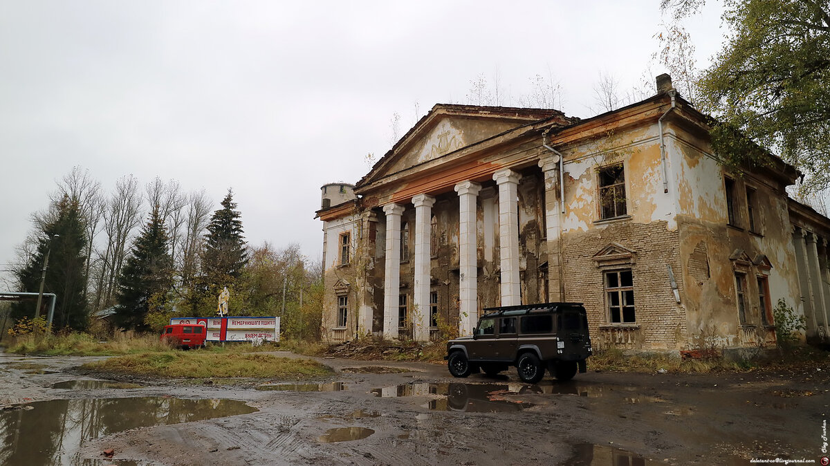 Давайте вернёмся в центр посёлка. ГАРНИЗОННЫЙ ОФИЦЕРСКИЙ КЛУБ сожгли году в 2004, насколько я знаю. Вид довольно удручающий. У нас в Балашихе ДК МАШИНОСТРОИТЕЛЬ помпезно отреставрировали, за что властям огромное спасибо. Они между прочим, чуть ли не как две капли воды. Такого унылого величия ушедшей эпохи СССР я давно не видел.