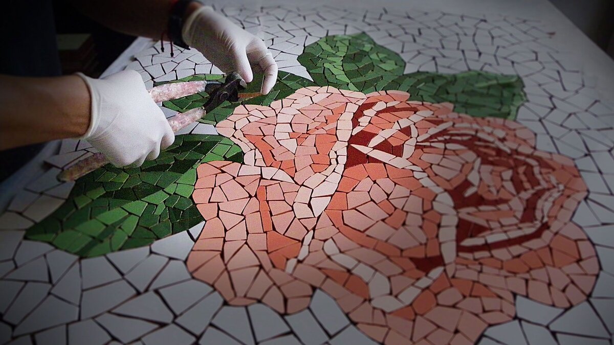 «Мозаичные панно собираются из кусочков колотого камня, смальты или пасты. Такие кусочки называются тессерами. На одну композицию, в зависимости от сложности рисунка и колористики, их может уходить до нескольких миллионов!
