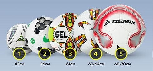 В зависимости от возраста игрока, выбирается тот или иной размер мяча. Для детей и женщин некоторые производители предлагают облегченные мячи 4-го и 5-го размера с такой же длиной окружности, но с меньшим весом на 40 – 50 г.