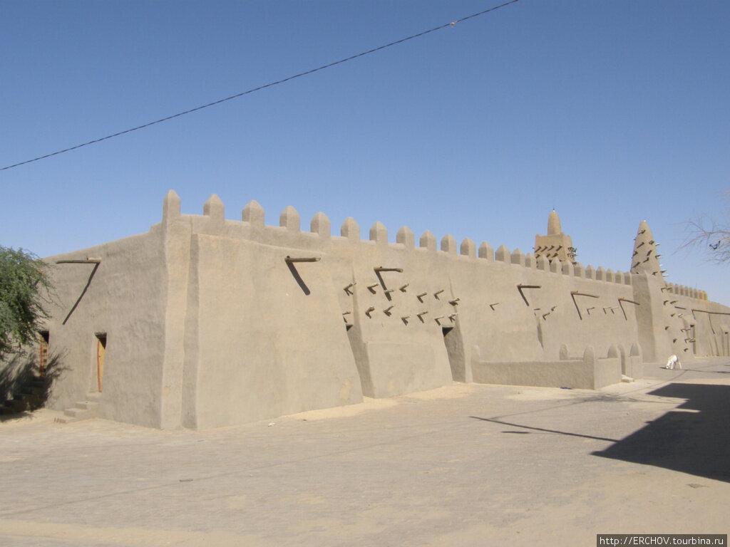 Утром, после завтрака, отправляемся изучать город. Сердце Тимбухту это построенная в 14 веке мечеть Джинкарейбер — старейшее глиняное здание в Африке. Здесь к нам присоединяется местный гид, он говорит то на английском, то на бамбара, а Наташа переводит на русский. Что-то можно понять из рассказа, а что-то нет. Как хорошо, что я в Москве много читал про Мали. Мали достигла расцвета в 14 веке при императоре Канку Муссе. В 1324г он совершил паломничество в Мекку, которое было обставлено с помпезной роскошью. Кортеж сопровождала свита: 15 тыс. придворных и слуг, 500 рабов несли слитки золота, и ещё 40 мулов были нагружены драгоценностями. Император щедро раздавал золото в Египте, оно даже упало там в цене. (Геолог Женя в самолёте говорил мне, что золото ищут только в пустыне, а не по берегам рек. Может вдоль рек за многие годы уже всё промыто? Впрочем, я полный дилетант в данном вопросе). Из Мекки в Канку Мусса привёз художников, строителей и учёных. Уроженцу Гренады Абу-Исхаку эс-Сахели, правитель повелел построить в Тимбухту мечеть Джинкарейбер. Строительство закончилось в 1328г. Арабский путешественник Лев Африканский в своём «Описании Африки и достопримечательностей, которые в ней есть» (1526г) отмечал, что в Тимбухту много священнослужителей, учёных, судей, хорошо оплачиваемых правителем, который благоволил к образованным людям. Ещё он писал, что в городе продавали много рукописных книг из Берберии и от продажи получали больше прибыли, чем от всех остальных товаров, что вместо чеканной монеты здесь употребляли куски чистого золота, а для небольших покупок использовали раковины каури или раковины, привезённые из Персии. Конечно, история штука спорная и написана она с позиции европейцев, ведь арабы давно знали про Тимбухту. Если бы Льва Африканского пираты не доставили бы к Папе Римскому, где он, изучив язык, описал свои путешествия, в мире бы про него не узнали. Некоторые европейские смельчаки побывали в Тимбухту до и одновременно со Львом, но в официальная история их заслуг не признаёт. Предлагаю стандартный европейский взгляд на историю открытия Мали.