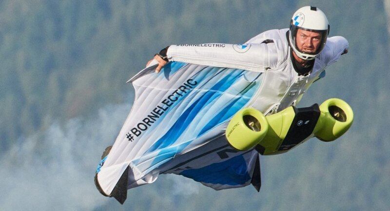 Компания BMW совместно с австрийским бейсджампером Петером Зальцманном разработали уникальный электрический вингсьют (костюм-крыло).